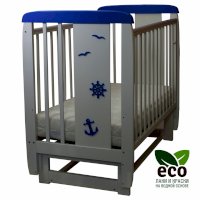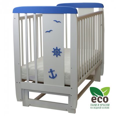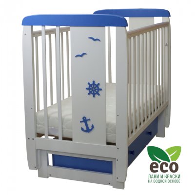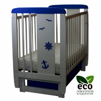 Кроватка декорирована деталями морской тематики.