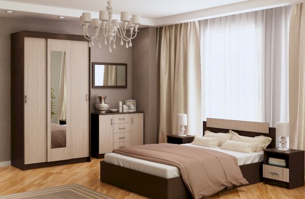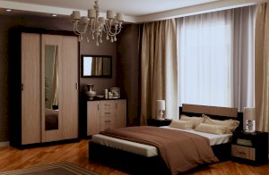 Модульная система для спальни "София" - это модульная программа для спальни, имеющая в своем составе большой выбор элементов для грамотного составления спального набора. Фасады светлых декоров комбинируются с тёмным корпусом.