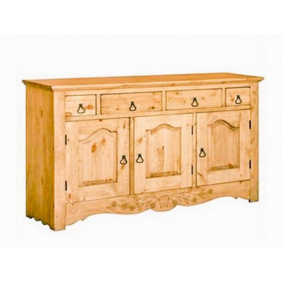 Благодаря такому буфету Вы без труда превратите Вашу кухню и гостиную в небольшой уголок деревенской Франции, где дышится легко и привольно, где душа согревается теплом настоящего дерева.  Буфет не только готов сохранить все изобилие солений и прочих домашних заготовок, но и стать красивым обрамлением для столового серебра, чайного сервиза, многочисленных полотенец и столовых приборов. Под верхней аркой образуется большая столешница, которую можно использовать как рабочую поверхность для приготовления обедов и ужинов.