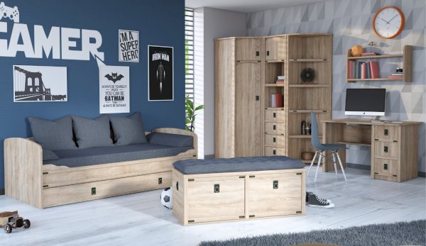 Угловой стеллаж можно поставить с шкафами и пеналами разной глубины. Имеет универсальную сборку и может располагаться, как справа, так и слева от шкафа. Открытые полки позволят разместить книги, фотографии в открытом доступе, а также украсить комнату декором. Декоративные элементы бронзового цвета стилизованы под морскую тематику. Идеально компонуется со всеми модулями системы Валенсия.