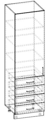 Пенал однодверный 4 ящика 600 КП.002.600-01