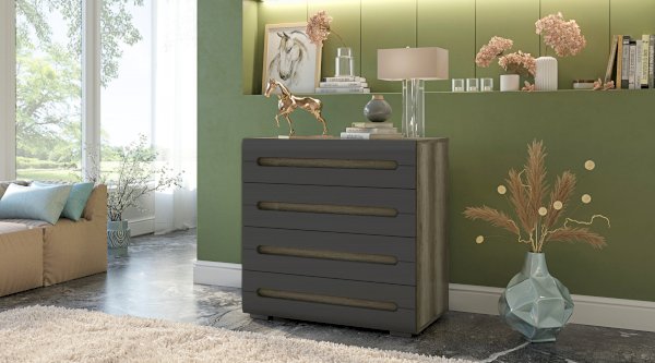 Комод Наоми – отличный выбор! Он украсит собой любую комнату за счет стильного дизайна. В данной модели нет стандартных ручек, они встроены в фасады выдвижных ящиков. В дизайне комода сочетаются цвета, поэтому он прекрасно подойдет для современного интерьера.