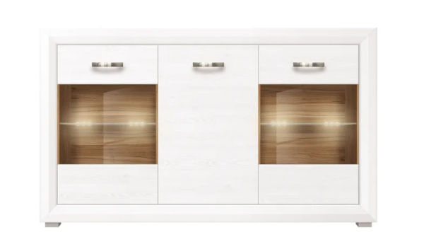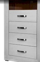 MALTA – коллекция мебели, состоящая из множества функциональных модулей, которые позволяют обустроить любую комнату. Великолепные белоснежные фасады коллекции Malta удачно контрастируют со вставками из «орех лион», продолговатые  металлические ручки добавляют изящества, а подсветка стеклянных полок выгодно подчеркивает древесную структуру дерева.