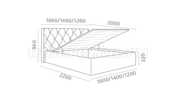 Кровать доступна в 3-х размерах:  1200, 1400, 1600 мм.