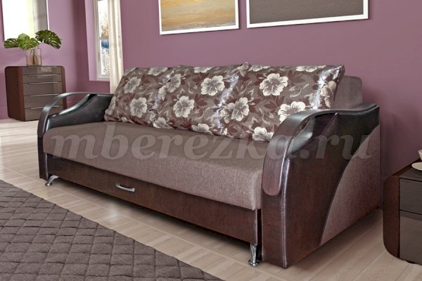 В дизайне дивана использованы контрастные по цвету обивочные ткани. Декоративные подушки с цветочным принтом. По желанию заказчика ткань может быть заменена на другую – по цвету и фактуре.