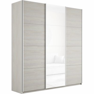 Шкаф-купе 3-х дверный Прайм ДСП/Зеркало/ДСП 1800 мм Белый снег