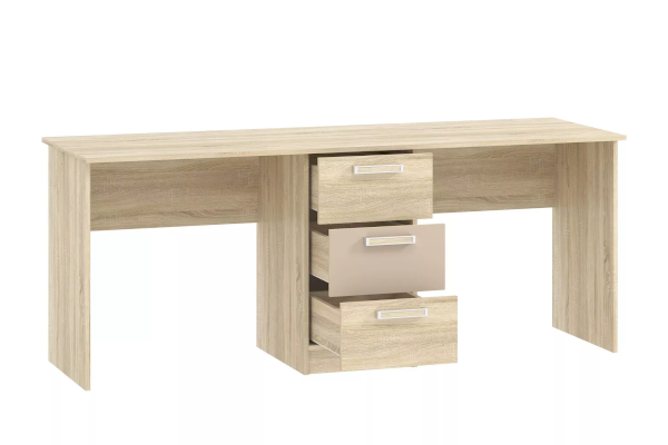 Уникальная конструкция стола поможет обустроить комфортный учебный уголок, если в семье двое детей. На рабочей поверхности модуля достаточно места для размещения не только письменных принадлежностей, но и ноутбука. Закругленные углы столешницы делают эксплуатацию модуля безопасной для детей. По окончании занятий ребенок сможет убрать книги и тетради в выдвижные ящики для поддержания порядка на рабочем месте.